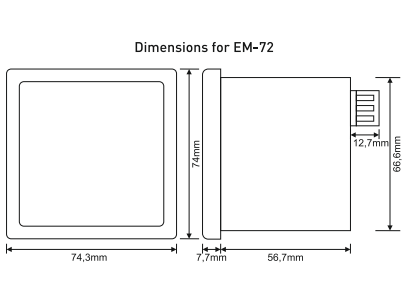 - (EM-06 a EM-72), nepriame meranie 5/5...9995/5A (EM-06 a EM-72), 1A - 100A (EM-100D) , 2-250A (EM-250D);