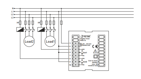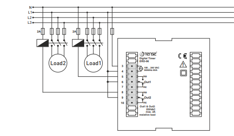 Časové cyklické + ON-DELAY relé LED displej pre montáž na panel/dvere 230VAC - bliknutie na začiatku impulzu , bliknutie na začiatku pauzy cyklického relé, časový spínač s oneskorením. TENSE ERD-96 ERD-48, ERD-72