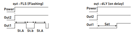 Časové relé s dvoma funkciami - funkciou oneskorenia zapnutia a funkciou cyklického relé.