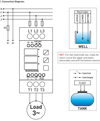 - 1A - 30A ponorné čerpadlo (vnútorný stýkač a prúdové transformátory)