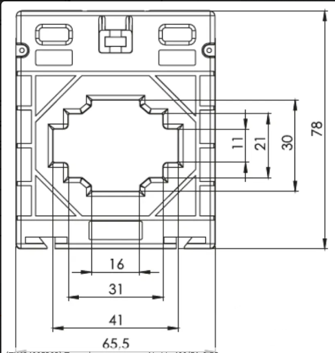 Násuvný merací transformátor pre primárne menovité prúdy od 300 do 800 A, sekundárny prúd 5 A, menovité výkony 1,5 až 10 VA, k dispozícii v triede presnosti 0,5S.